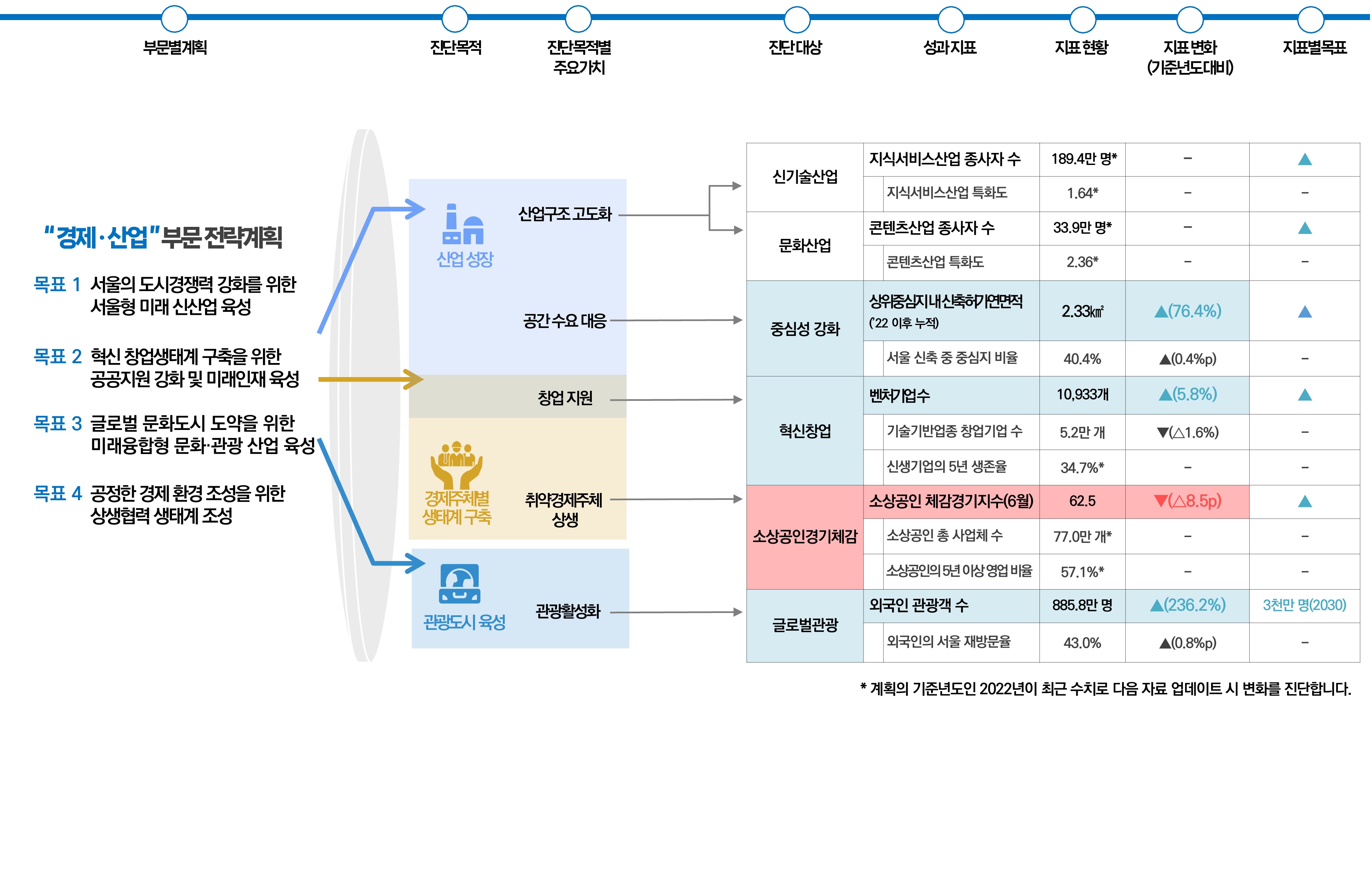 | 글로벌관광 | 외국인 관광객 수 | 885.8만 명 | ▲(236.2%) | 3천만 명(2030) | ||