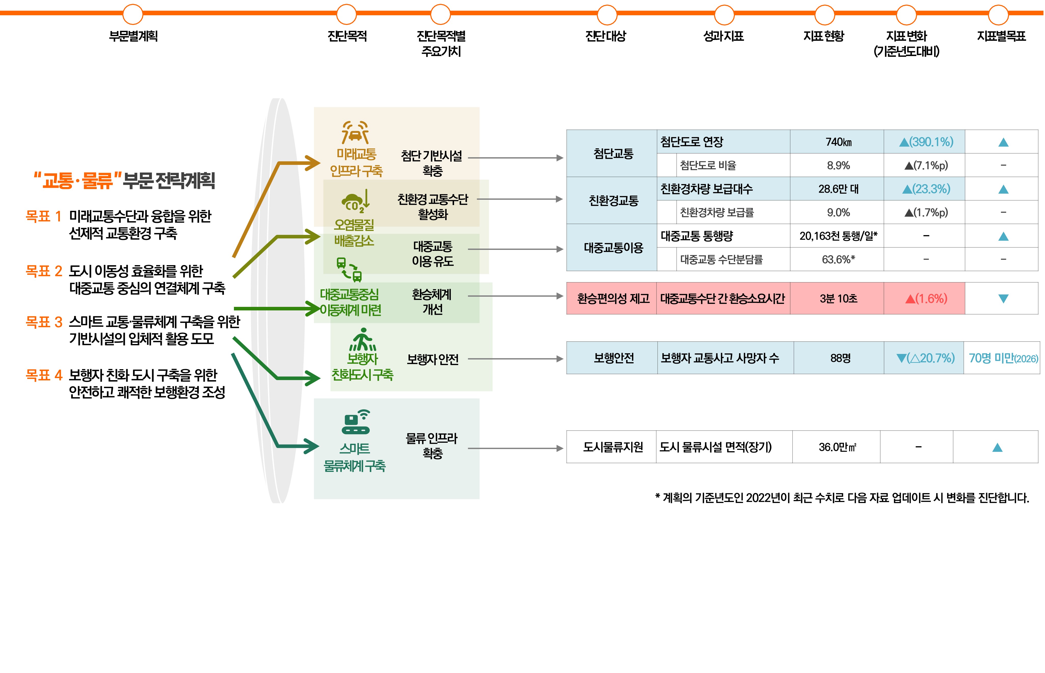 | 교통물류 | 첨단교통 | 첨단도로 연장 | 740㎞ | ▲(390.1%) | ▲ | |